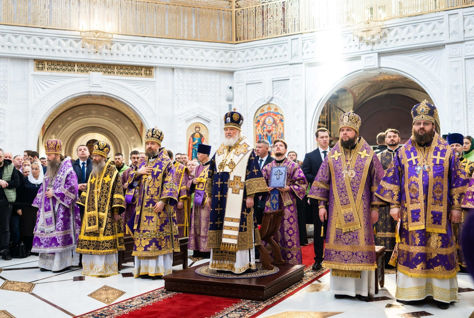 Патриаршее богослужение посетили заместитель председателя Государственной Думы Федерального Собрания РФ Анна Кузнецова; министр спорта РФ Олег Матыцин; председатель партии ЛДПР, руководитель фракции ЛДПР в Государственной Думе Леонид Слуцкий; губернатор Томской области Владимир Мазур; руководитель Федерального агентства по управлению государственным имуществом Вадим Яковенко; депутат Государственной Думы, советник Патриарха Московского и всея Руси по вопросам строительства Владимир Ресин.